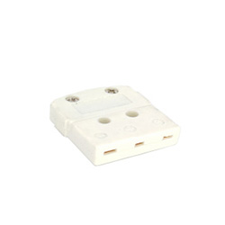 A1 3-pin RTD connector, standard round pin plug, 200 deg. C, glass filled thermoplastic body, white, copper pins, 32 AWG (0.2mm) to 14 AWG (2.0mm) wire size range.