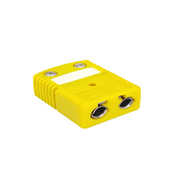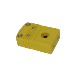 A1 Type K thermocouple connector, miniature flat pin jack, 200 deg C, glass filled thermoplastic body, yellow, thermocouple material pins, 40 AWG (0.08mm) to 20 AWG (0.8mm) wire size range.