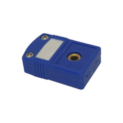A1 Type T thermocouple connector, miniature flat pin jack, 200 deg C, glass filled thermoplastic body, blue, thermocouple material pins, 40 AWG (0.08mm) to 20 AWG (0.8mm) wire size range.